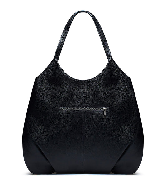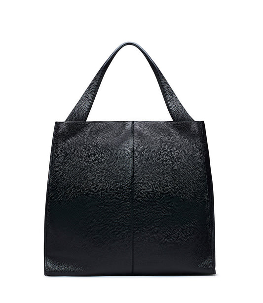 Black grained leather shopper bag