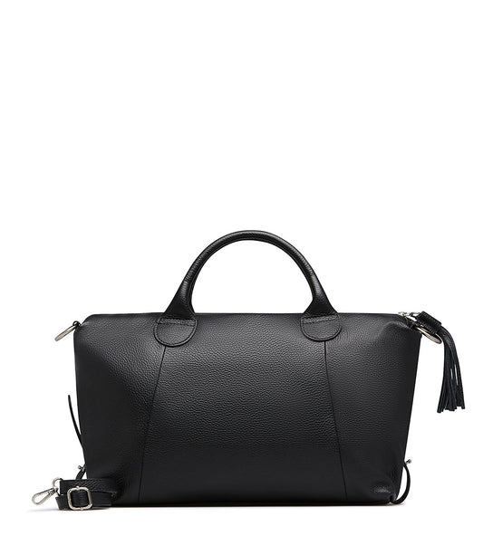 Black grained leather satchel bag