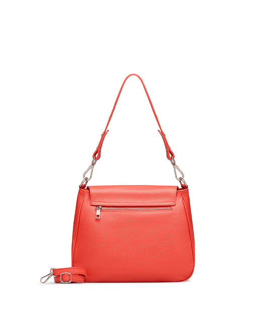 Coral red grained leather shoulder bag