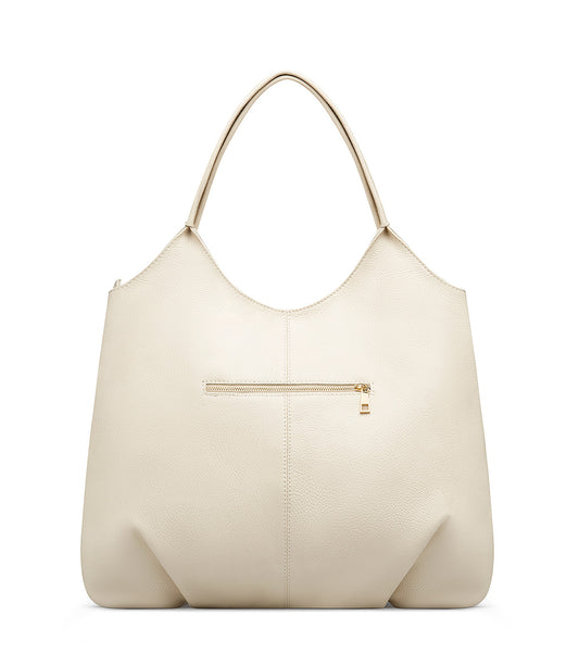 Milk white grained leather shopper bag