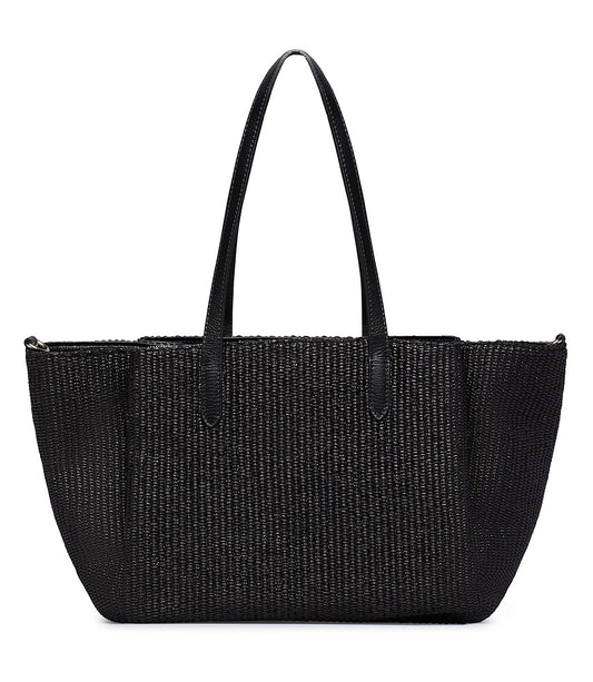 Black raffia and leather shopper bag