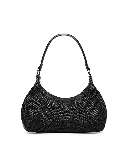 Black nappa and raffia hobo bag
