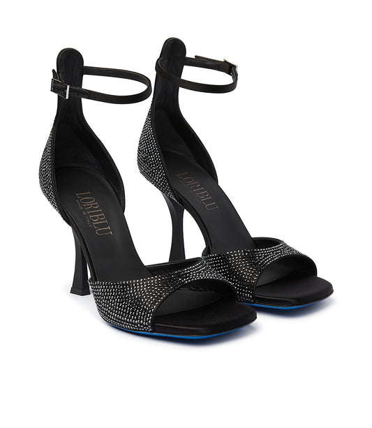 Rhinestoned black satin sandals