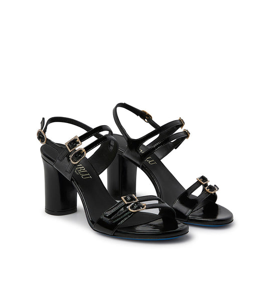Straped black glossy leather sandals