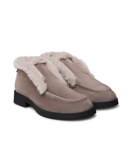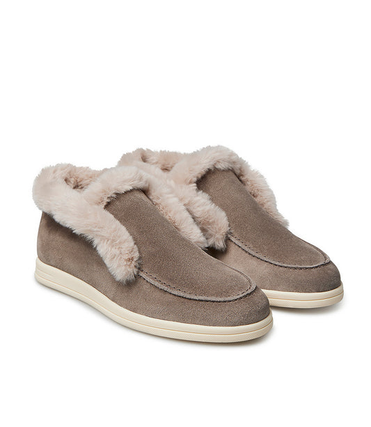 Faux furred clay-toned suede loafer