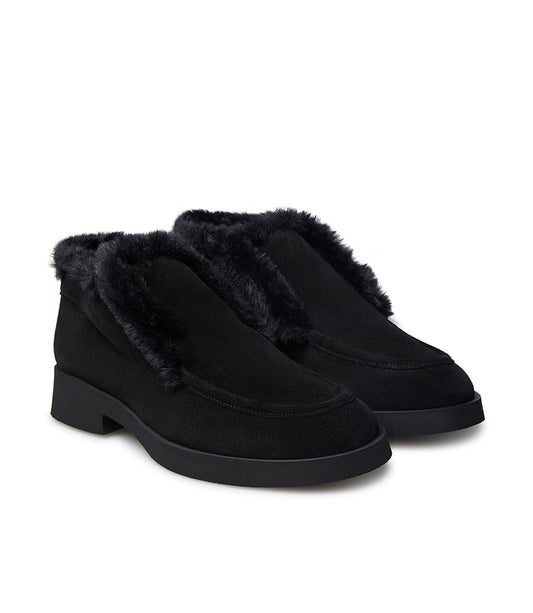 Faux furred black suede loafer