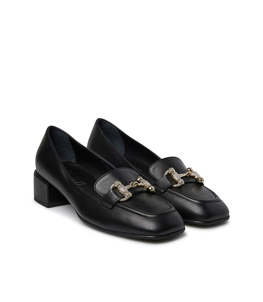 Jewel clamp black nappa loafer
