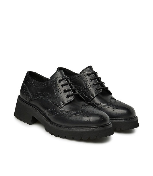 Black brogue calfskin derby shoe