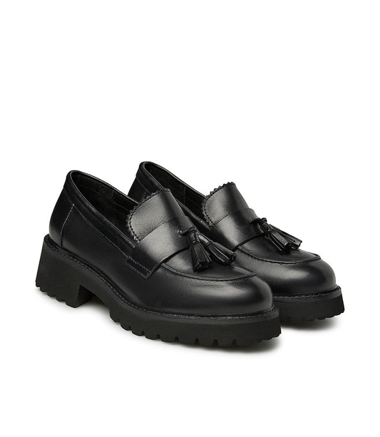 Black nappa leather loafer with tassels