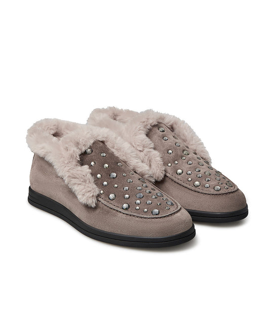 Crystals emellished clay-toned suede loafer