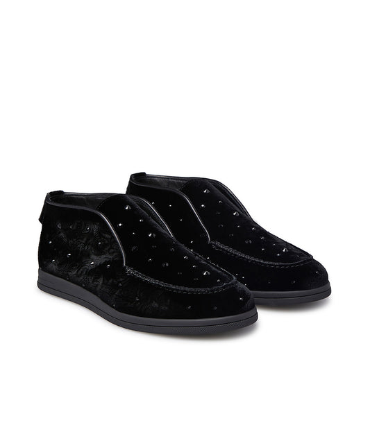 Crystals embellished black velvet loafers