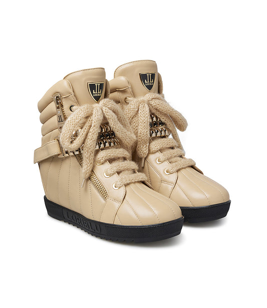 In the selection of Loriblu sneakers you will find unique models, with a refined and glamorous design. Hand-made, sparkling applications and precious stones that alternate with selected materials that confer comfort, enveloping you in a glamorous but comfortable embrace. Sneakers can be very trendy especially if revisited following current fashions. Loriblu not only follows trends but creates them and choosing one of the products such as women's wedge sneakers means anticipating the times and dictating trends.