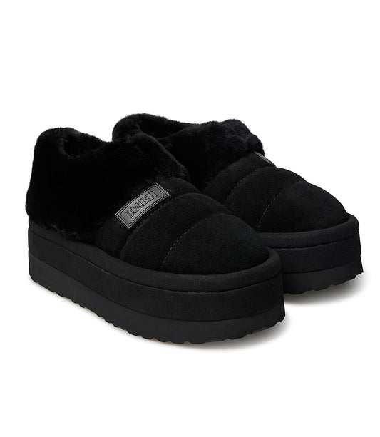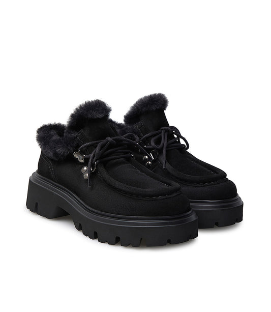 Scarpa in camoscio nero con risvolto in eco pelliccia