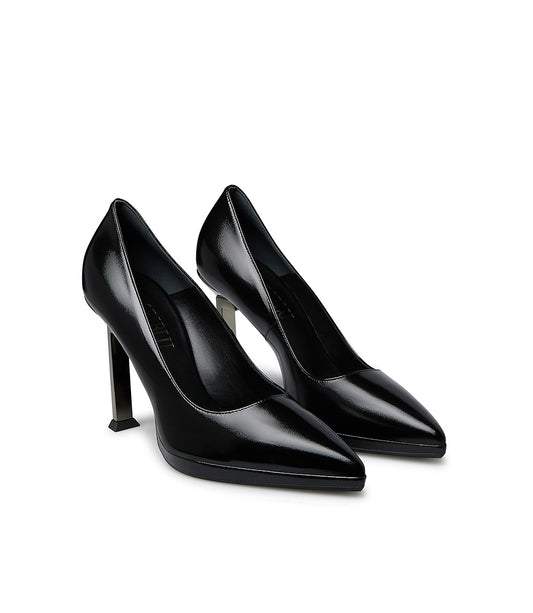 Décolleté onda in nappa nero con tacco in metallo