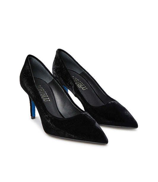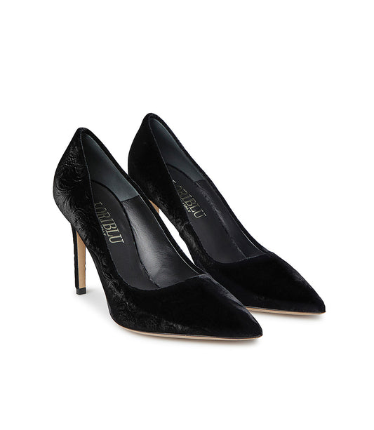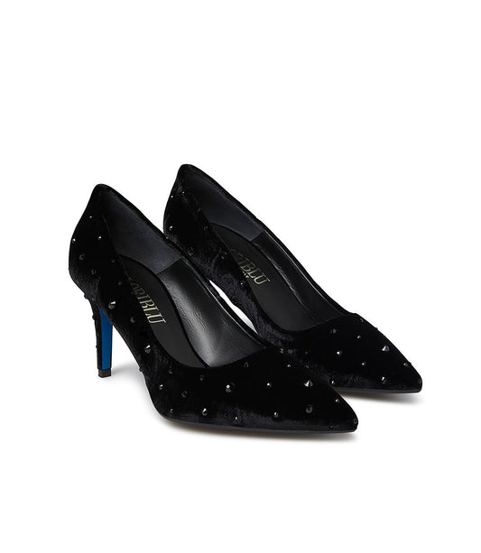Décolleté in velluto nero con tacco L