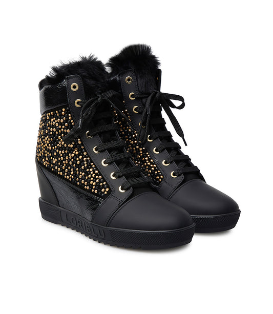 Sneakers nera con zeppa interna e borchie