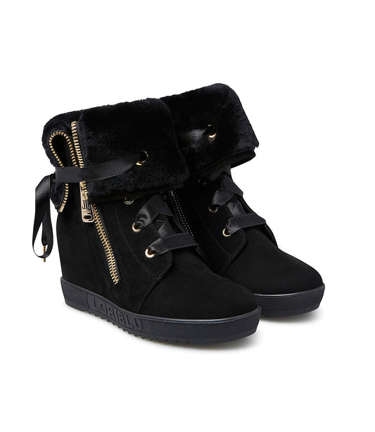 Sneaker in camoscio nero con zeppa interna