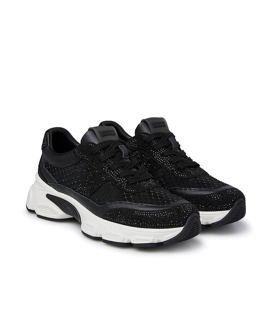 Sneaker in camoscio beige con cristalli e eco pelliccia