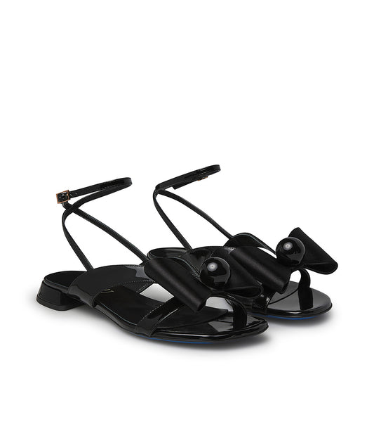 Sandalo in vernice nero con fiocco in raso