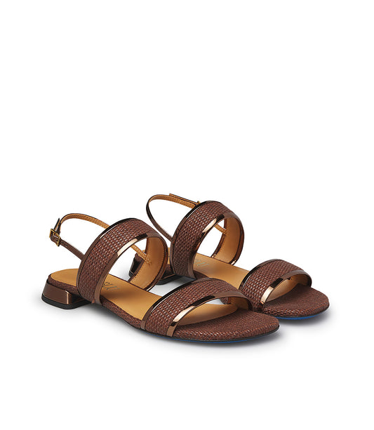 Sandalo basso in rafia e vernice bronzo
