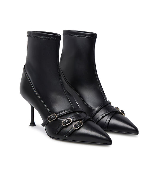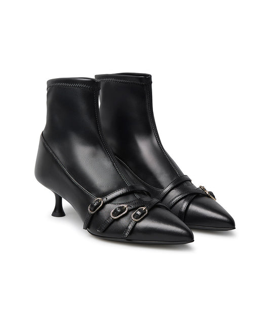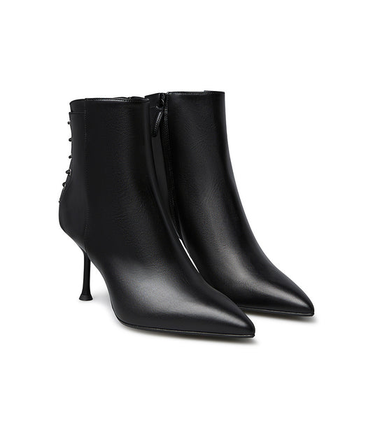 Stivaletto alla caviglia in camoscio nero con tacco in metallo oro