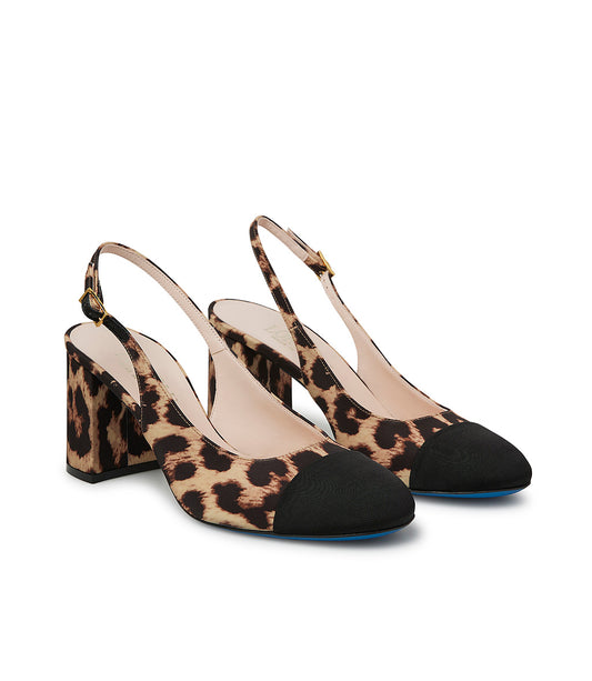 Slingback in tessuto stampa leopard e gross grain nero