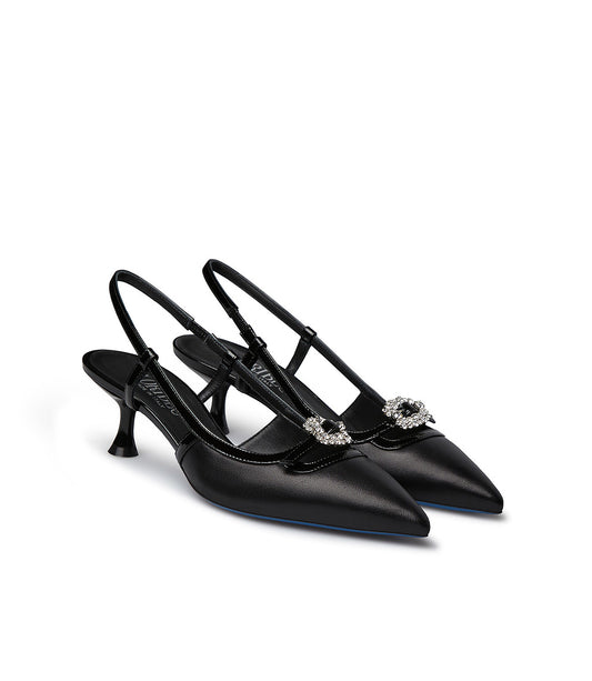 Slingback nappa nera con gioiello