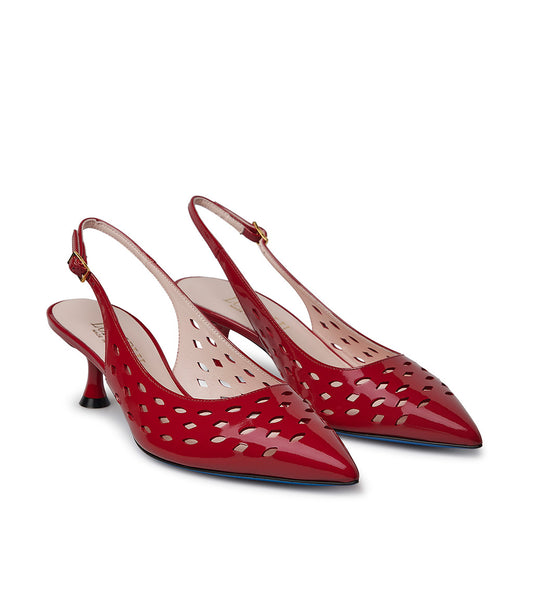 Slingback in vernice rossa con dettagli laser-cut geometrici