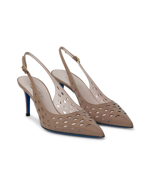 Slingback in vernice nude con dettagli laser-cut