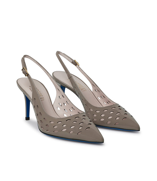 Slingback in vernice fango con motivi laser-cut geometrici
