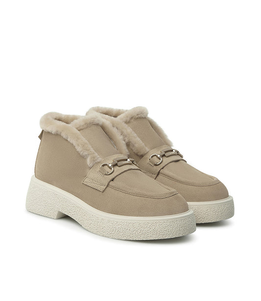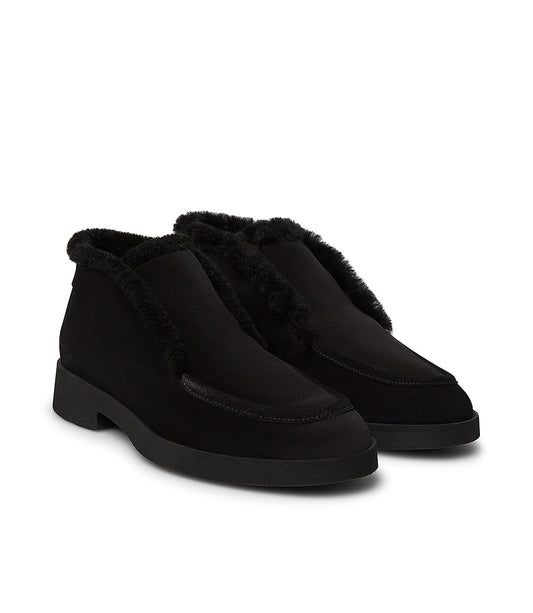Mocassini in camoscio e shearling nero con fibbia-logo