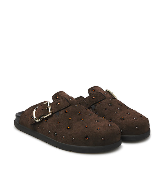 Sabot in camoscio moro con cristalli
