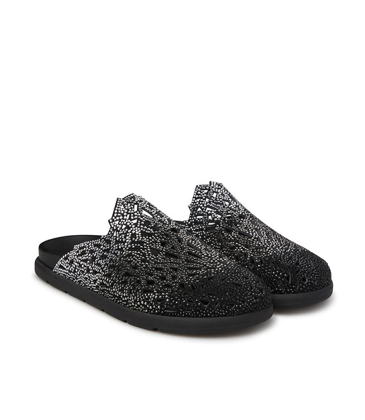 Sabot in camoscio nero con cristalli