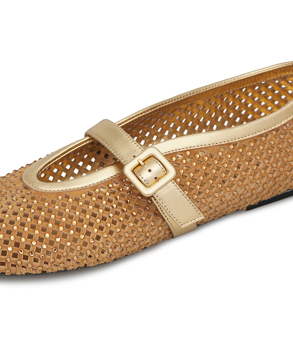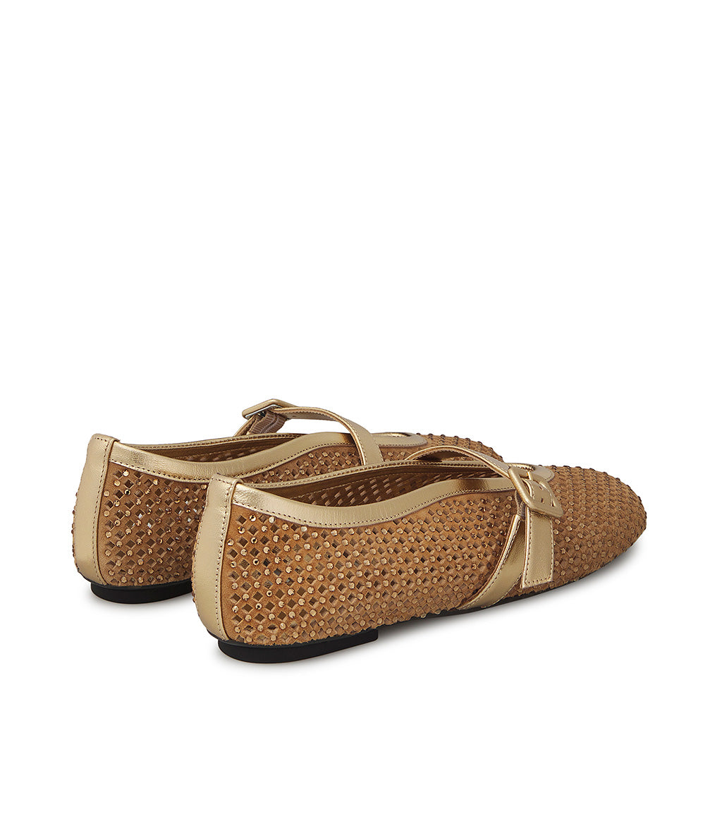 Ballerina in camoscio tabacco con cristalli