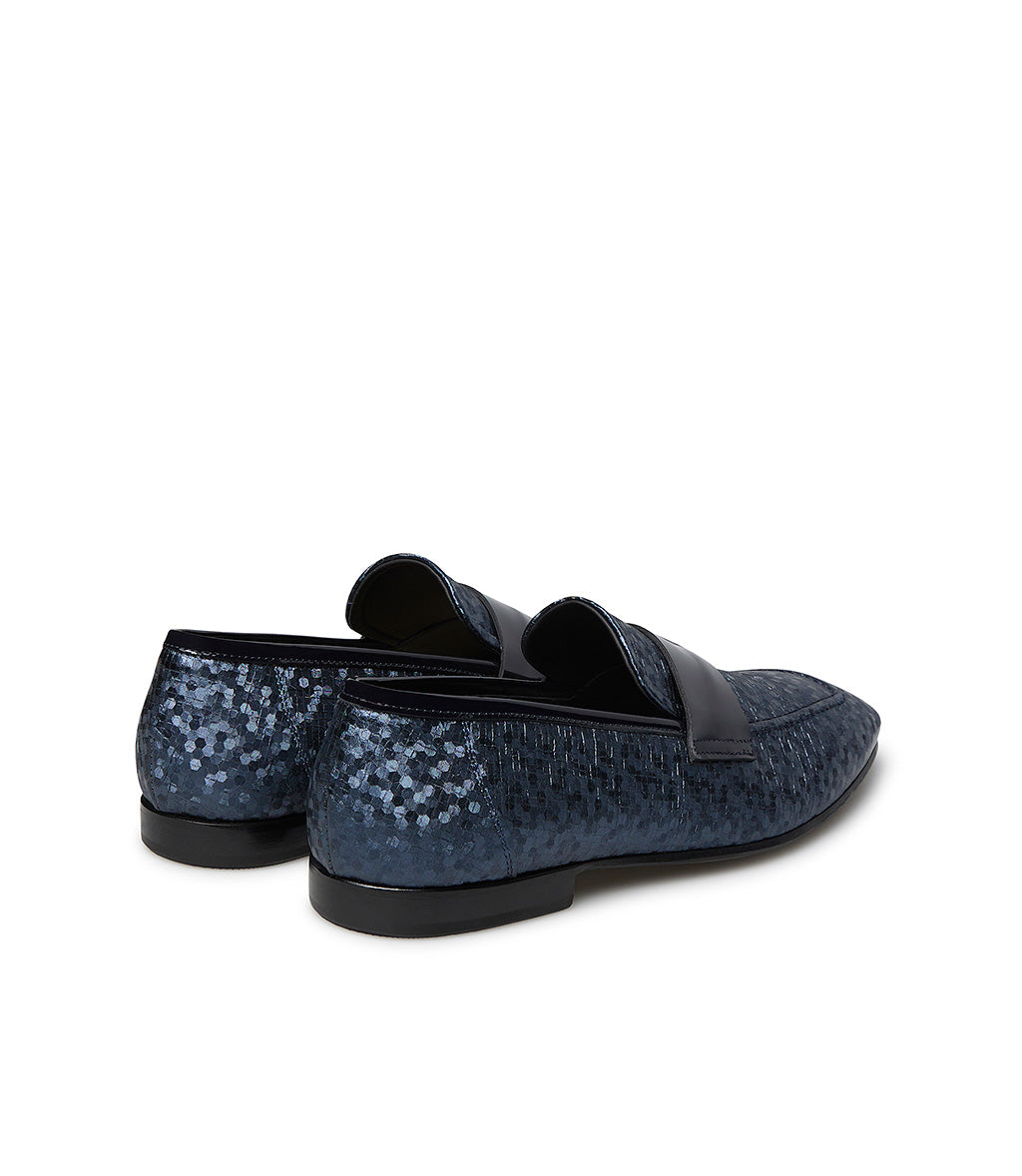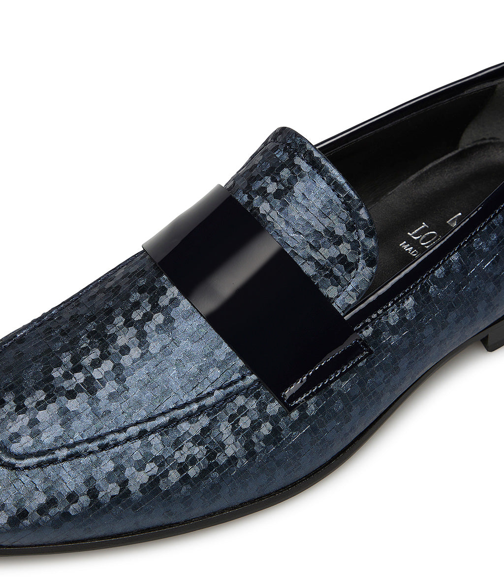 Loafer in tessuto blu e vernice nera