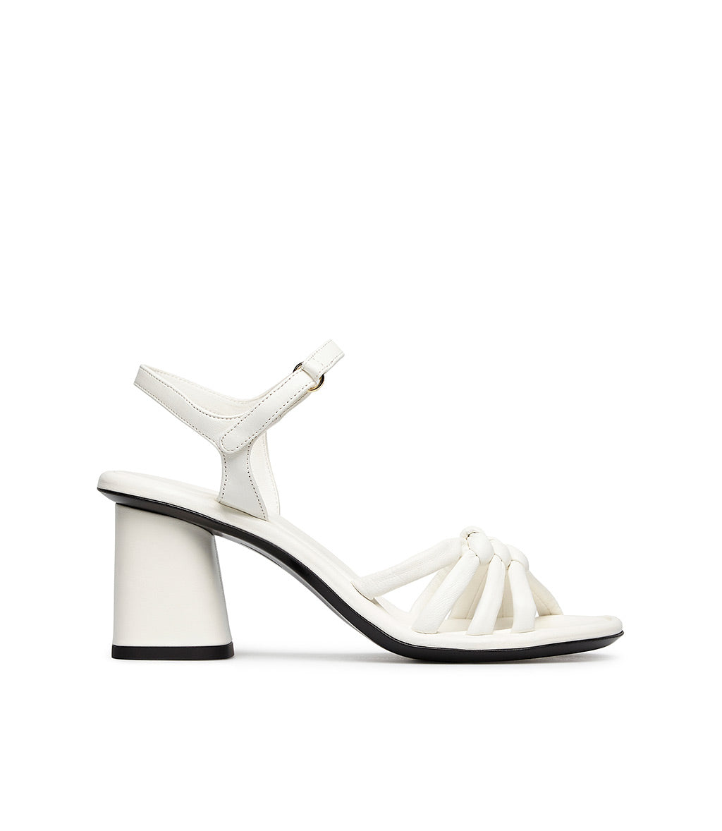 Sandalo in nappa bianca con listini annodati