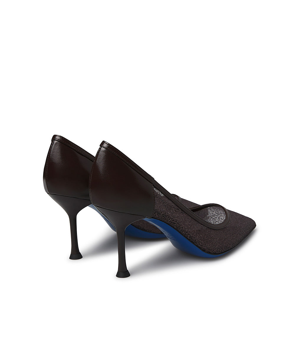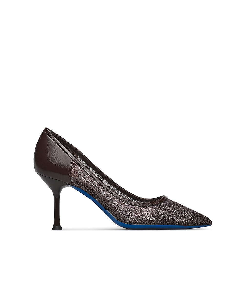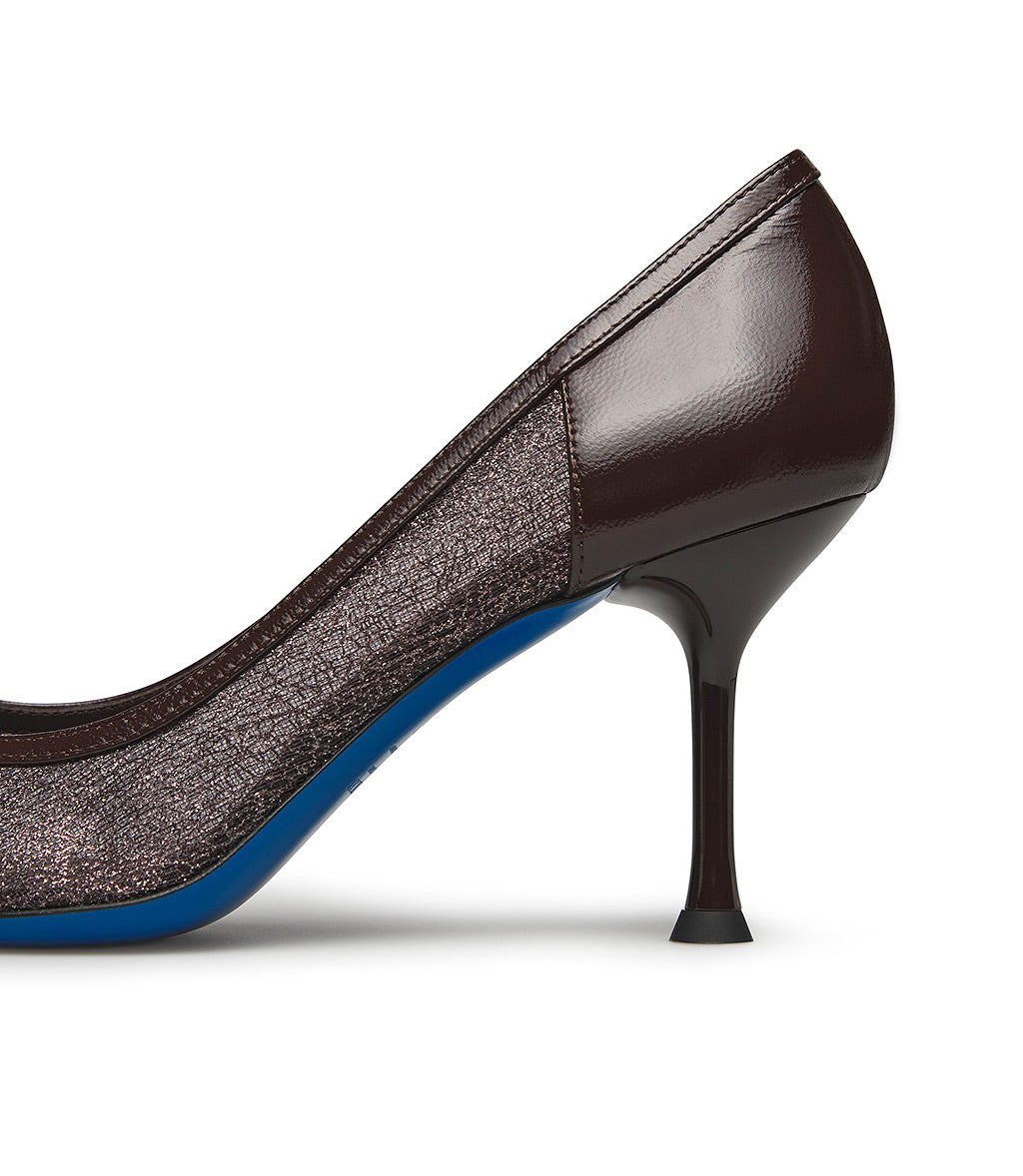 Décolleté in vernice e tricot marrone