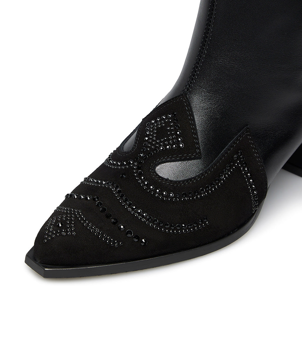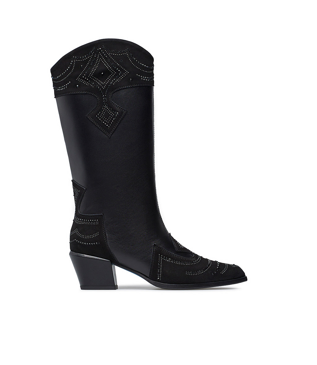 Stivale texano in vitello nero con decorazioni