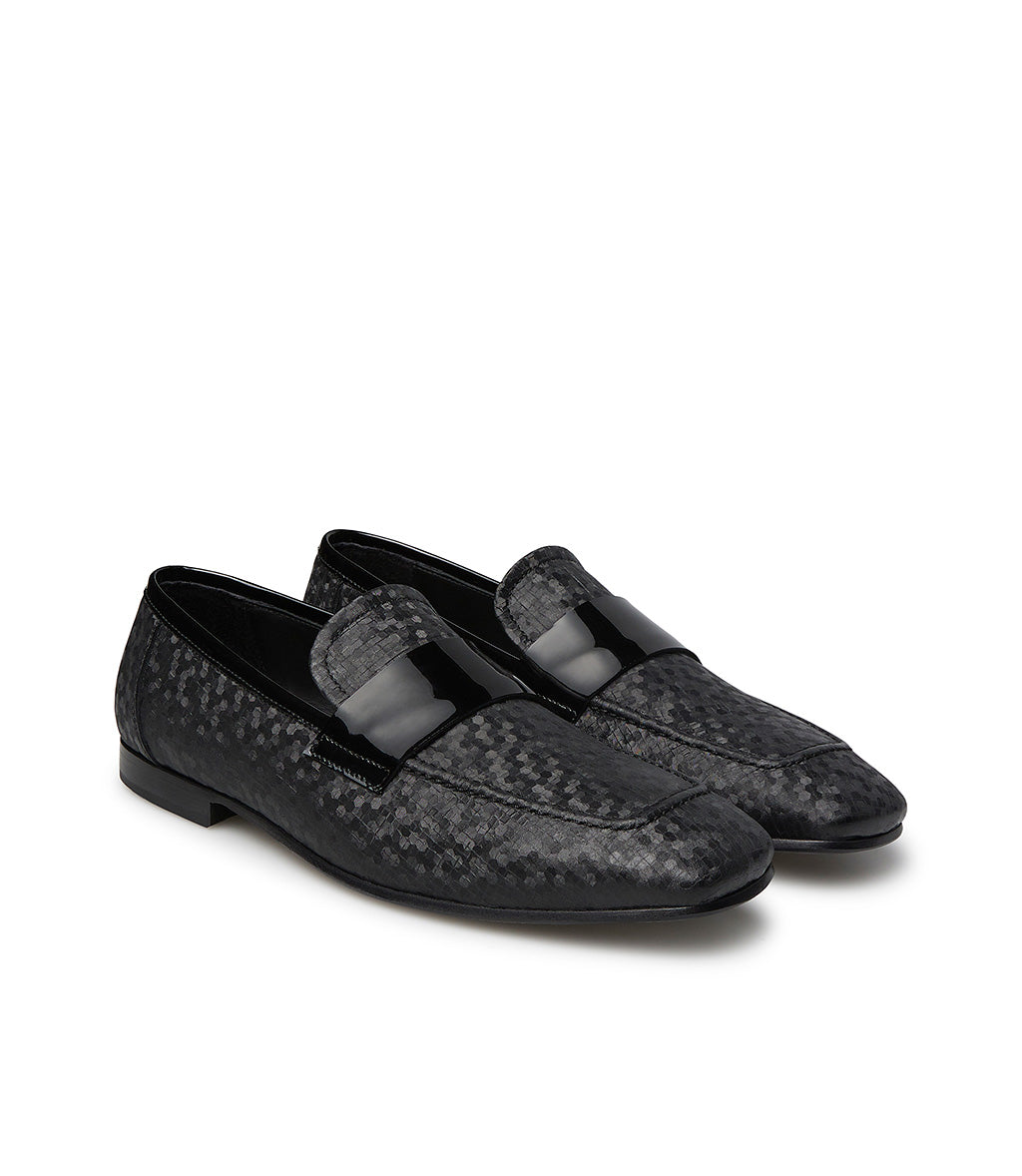 Loafer in tessuto e vernice nera