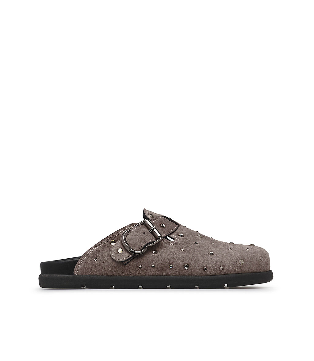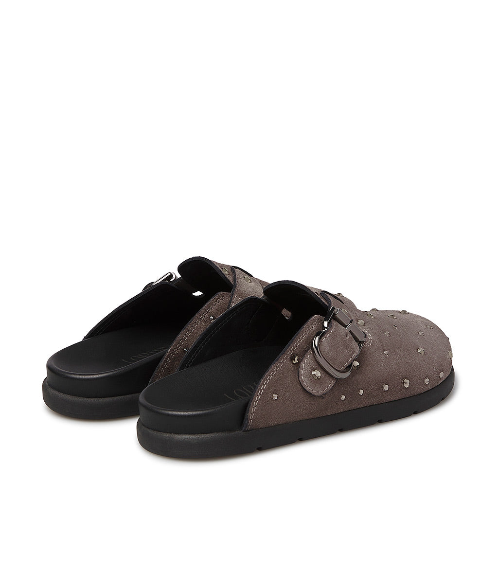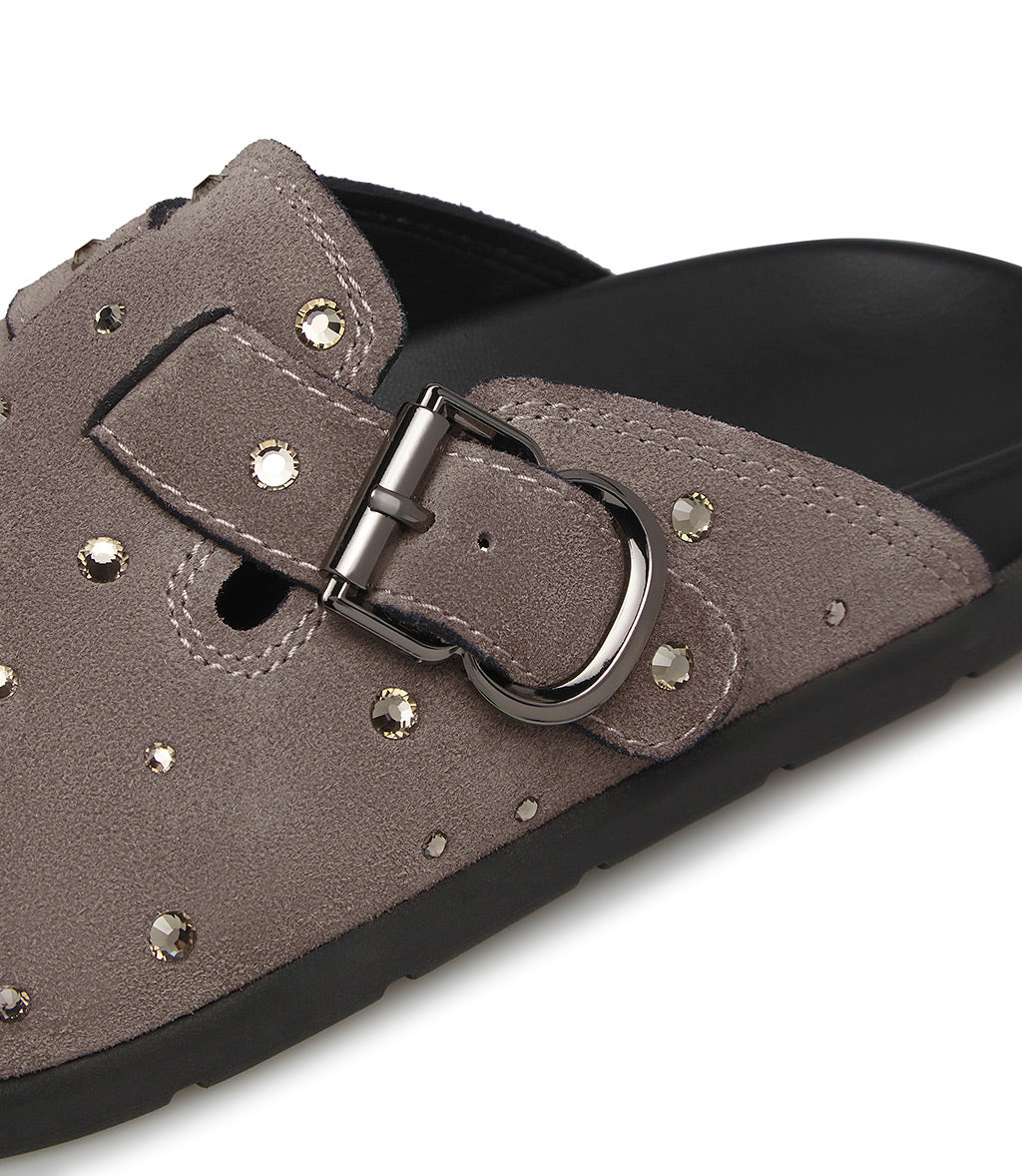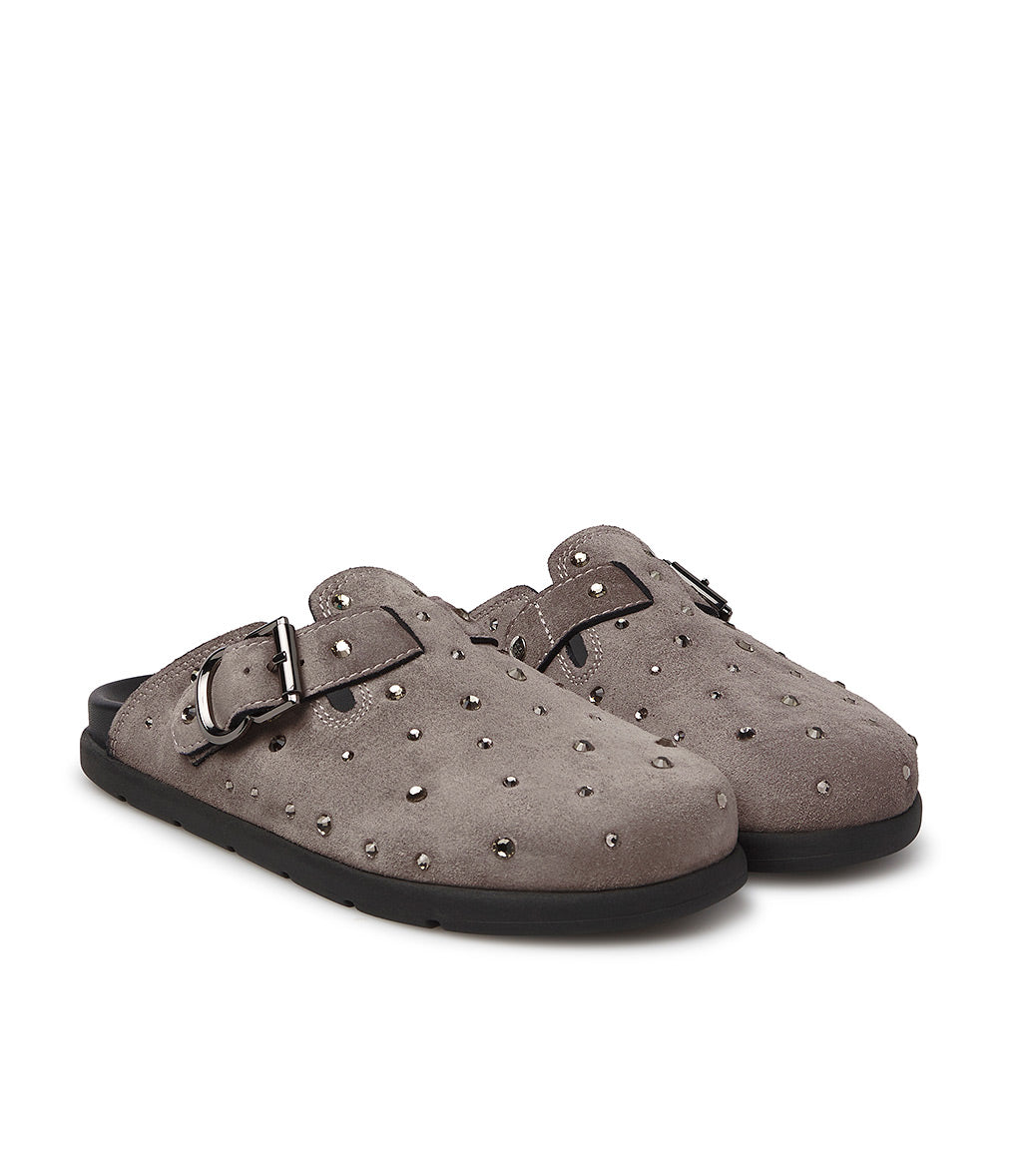 A cool alternative to classic sneakers, our clay-toned suede slippers feature a comfortable, ergonomic design embellished with crystals and a strap with a silver-tone metal buckle. They're meticulously crafted in Italy and feature a rounded toe and a contrasting black rubber sole for a sporty touch.