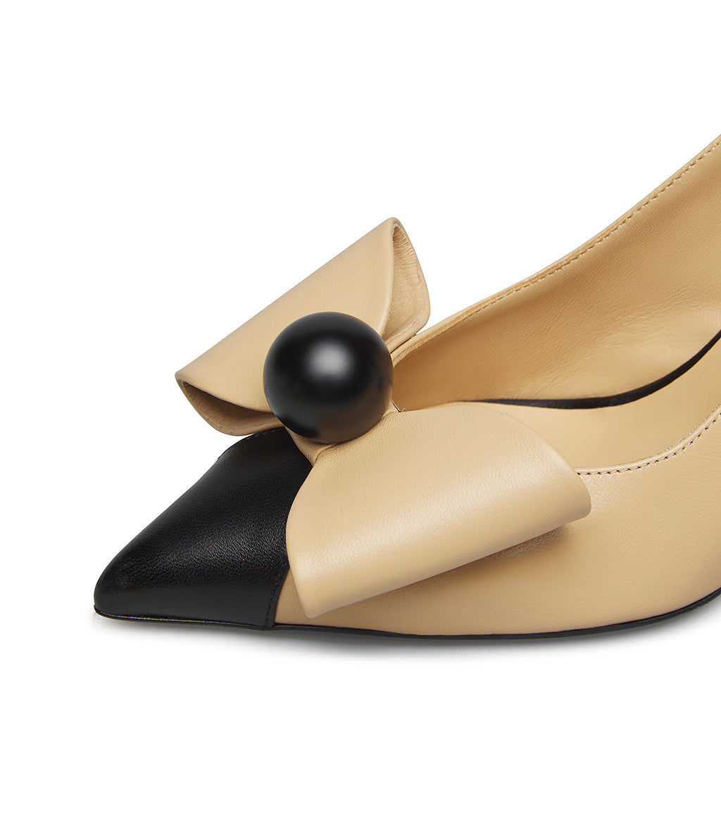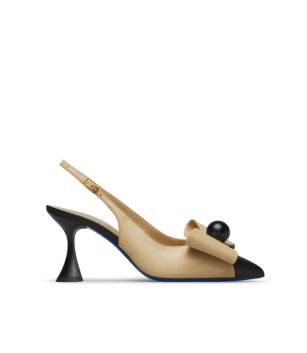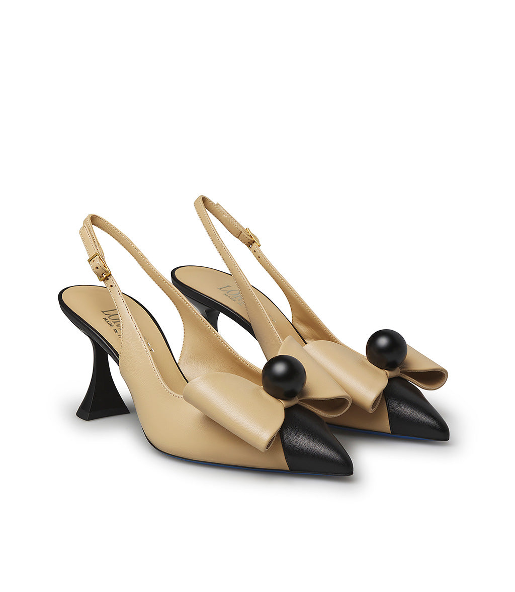 Slingabck in nappa beige con fiocco