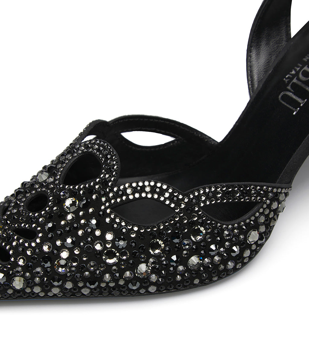 Black jewel suede slingbacks
