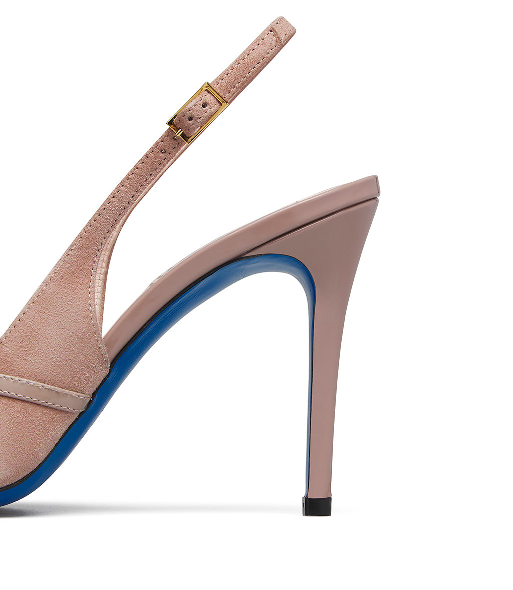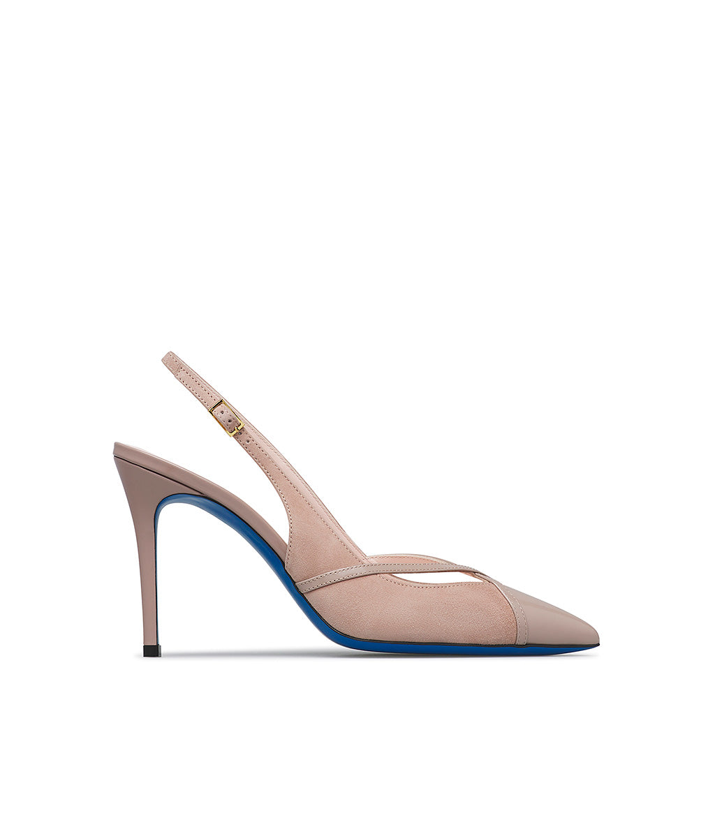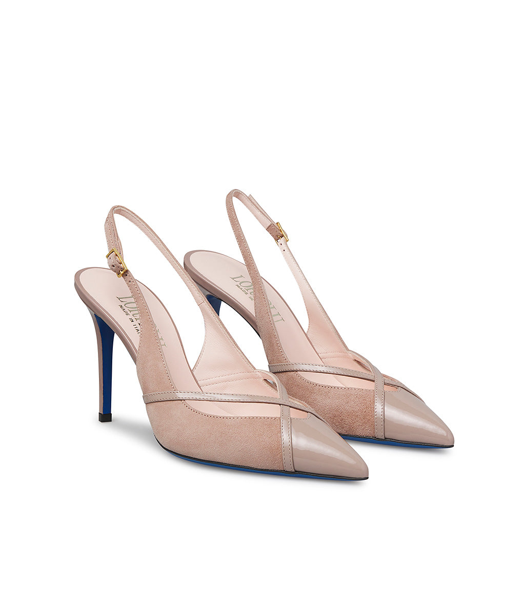 Slingback in camoscio e vernice madorla